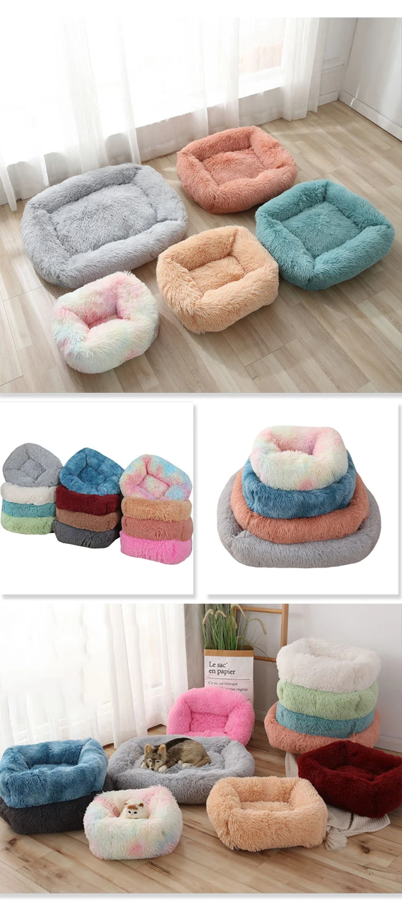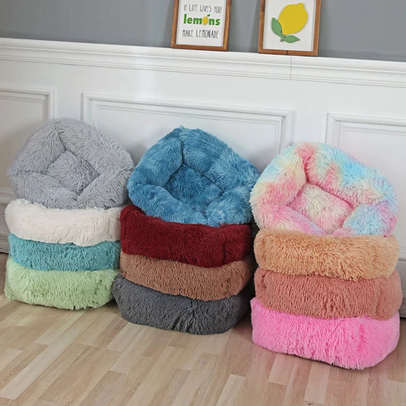 Плюшевая пушистая кровать для собаки, зимние теплые лежанки для домашних животных, домик для кошек, лежанки для маленьких и средних собак, собачья будка, мягкий флисовый диван, подушка для собаки, коврик
