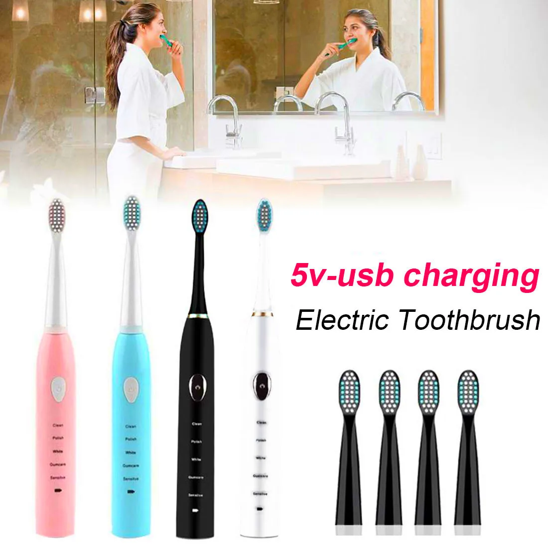 Мощная Автоматическая Ультразвуковая электрическая зубная щетка, перезаряжаемая через USB зубная щетка, моющаяся электронная щетка для отбеливания ningnanoteethbrush
