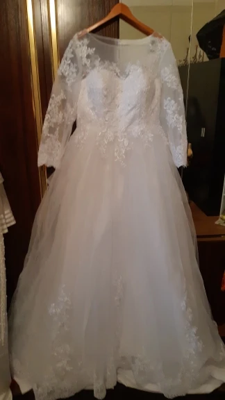Свадебное платье с длинным рукавом, круглым вырезом и аппликацией и...