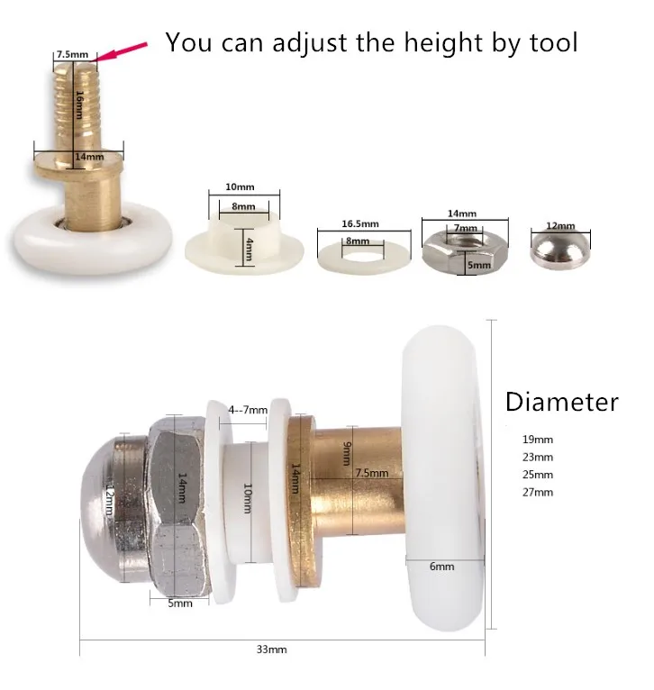 Душевая комната 20232527 мм OD ролик для раздвижные стеклянные двери колес с нейлоновым валиком медное колесо валик для ванной колеса
