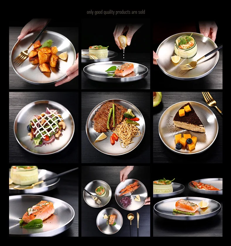 Экологически чистая металлическая обеденная посуда, круглый поднос для торта из Западного стейка, кухонные тарелки, посуда золотого и серебряного цвета, нелегко сломать