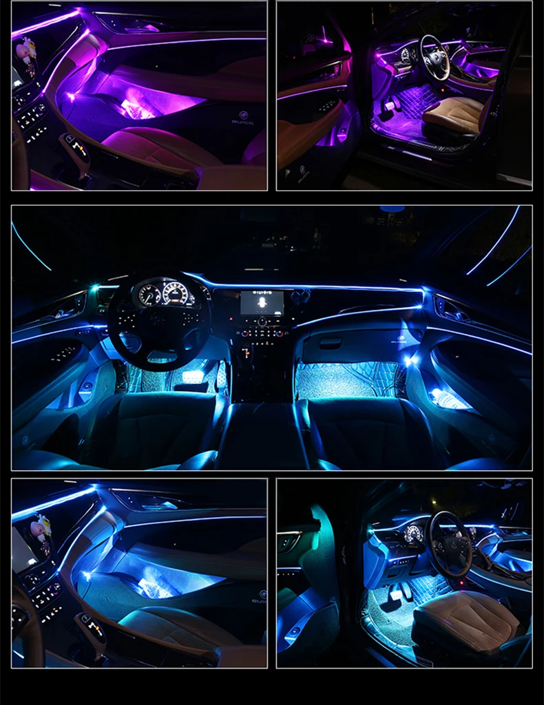 Автомобильный рассеивающий свет 14 в 1, RGB волоконно-оптисветильник, s цвета, декоративные лампы для салона автомобиля, управление через приложение