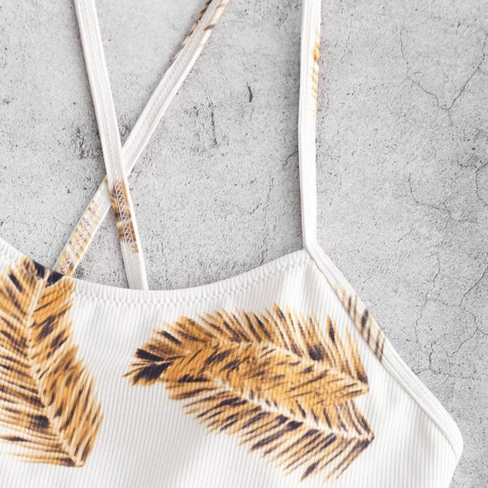 Для женщин пляжный костюм из двух предметов с принтом в виде листье...