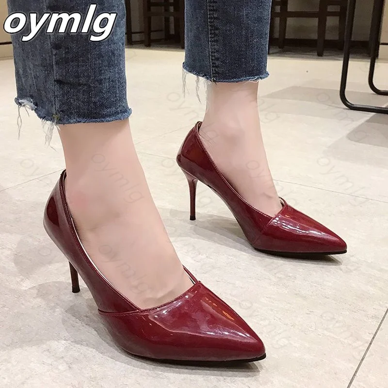 Лидер продаж 2020, женские туфли HEVXM с острым носком, туфли-лодочки из лакированной кожи, Классические свадебные туфли на высоком каблуке, женские туфли-лодочки абрикосового, винного, красного цветов, 6 см
