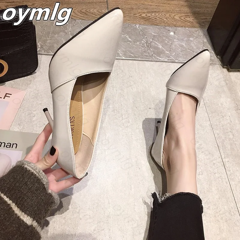 Туфли-лодочки женские на высоком каблуке 9 см, без застежки, заостр...