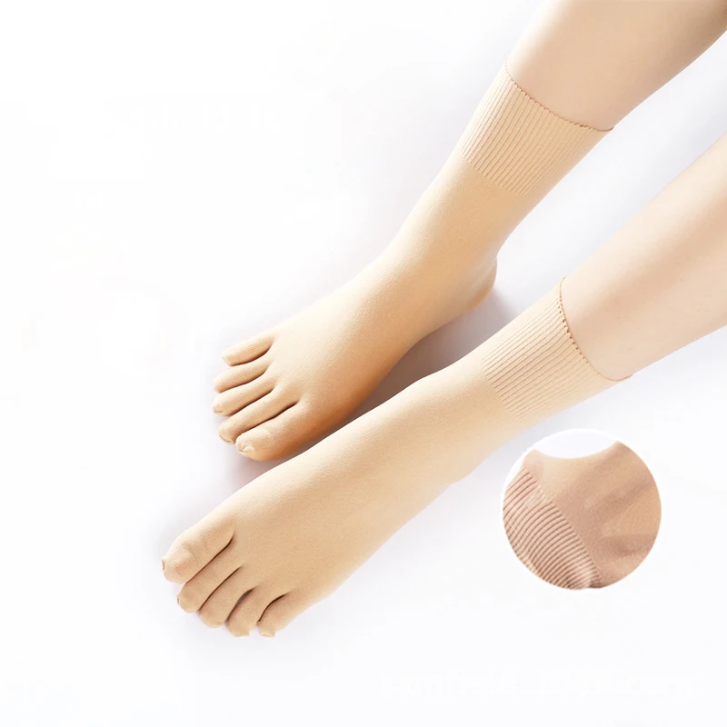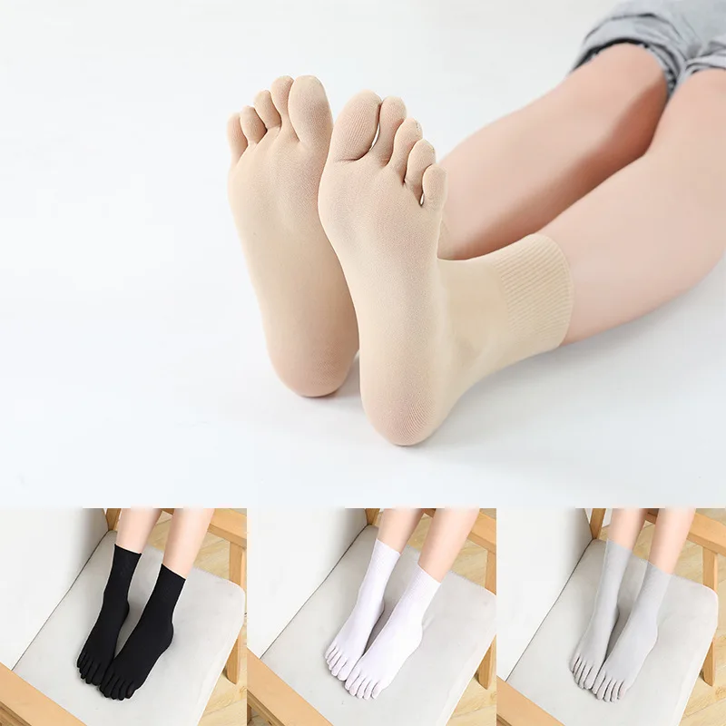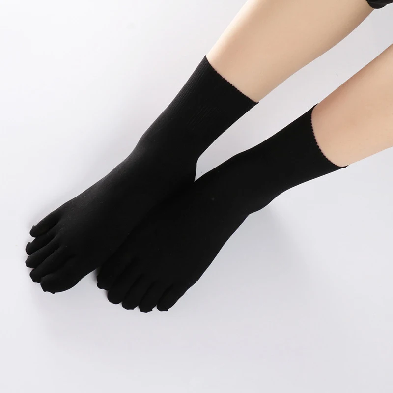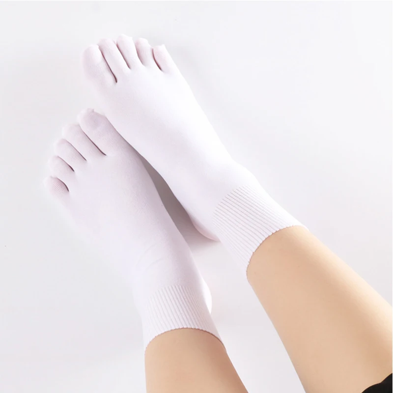 Носки женские нейлоновые с пальцами, тонкие однотонные модные компрессионные шелковые в японском стиле, чёрные белые, 5 пар