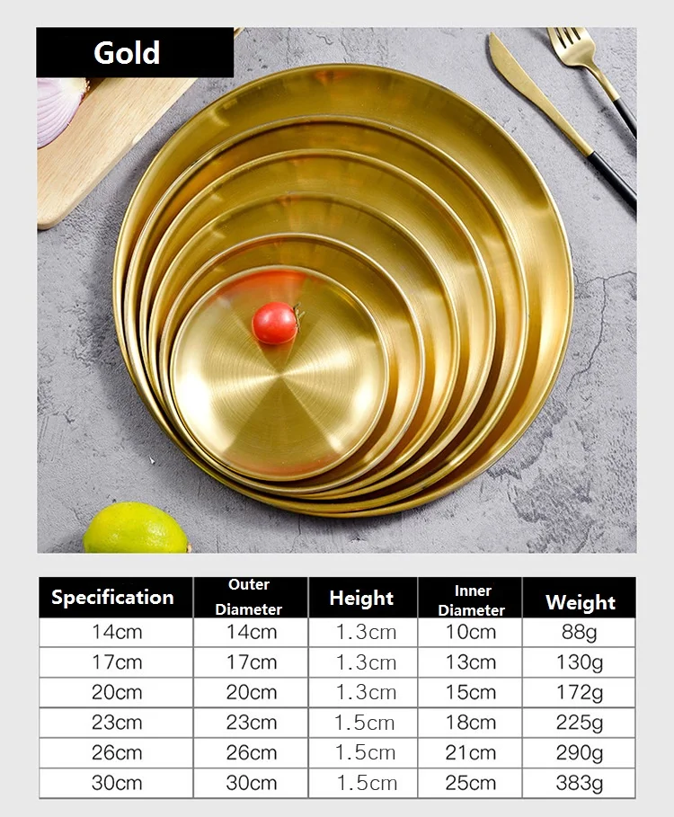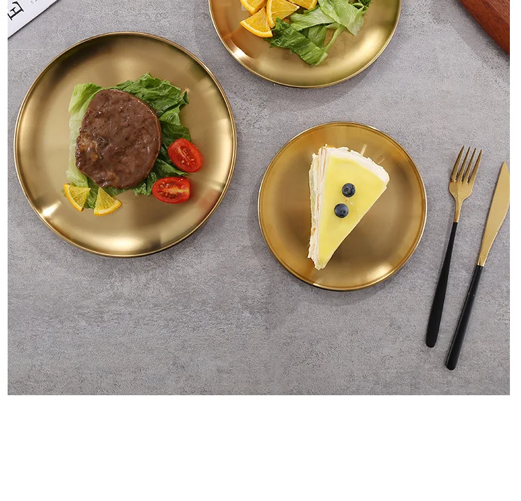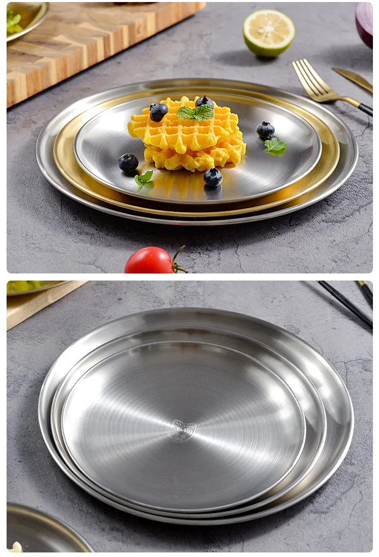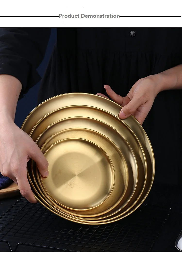Круглый латунный поднос в современном Корейском стиле, сервировочная посуда для торта, круглая кухонная посуда, круглая тарелка для барбекю на открытом воздухе
