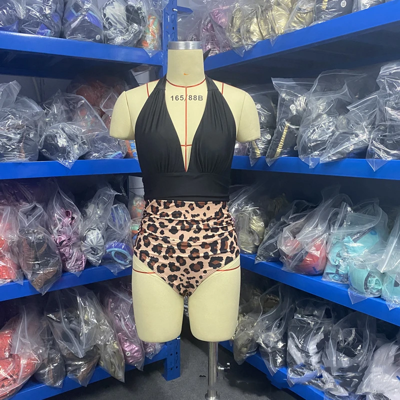 Женское леопардовое боди, сексуальный купальник с глубоким V-образным вырезом, облегающий Повседневный пляжный купальник, женский слитный купальник