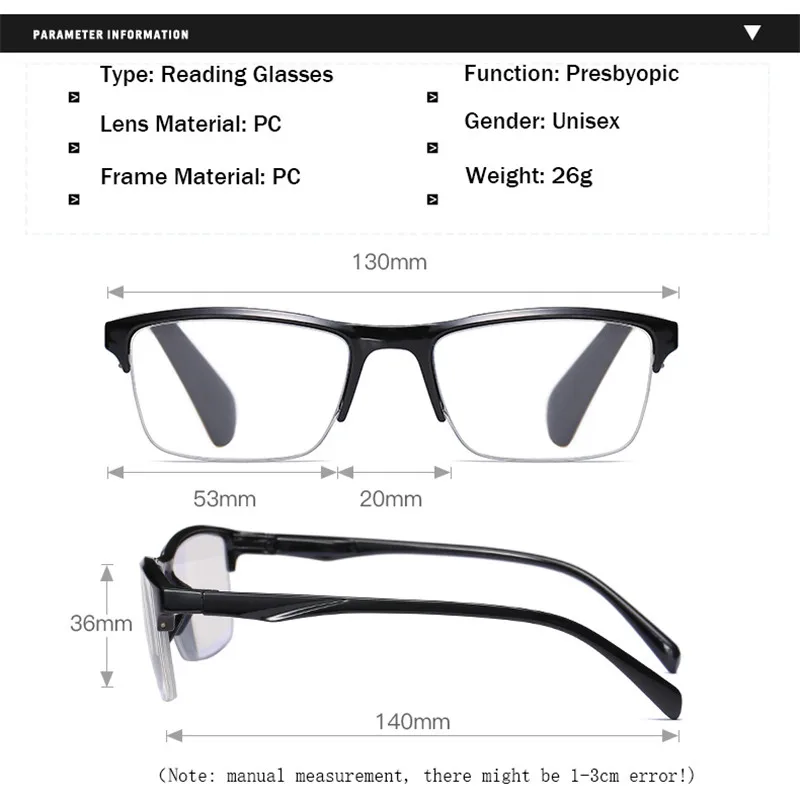 Сверхлегкий с плоскими стеклами и половинной рамкой очки для чтения...