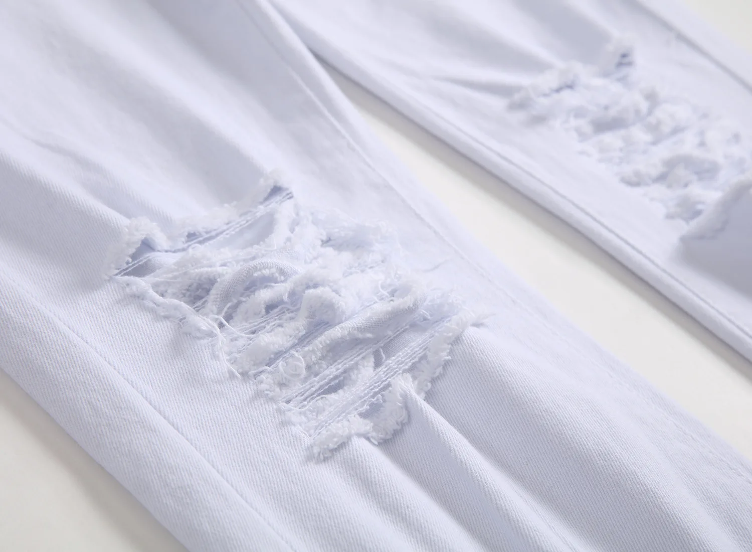 Джинсы мужские рваные из хлопка, повседневные облегающие брюки скин...