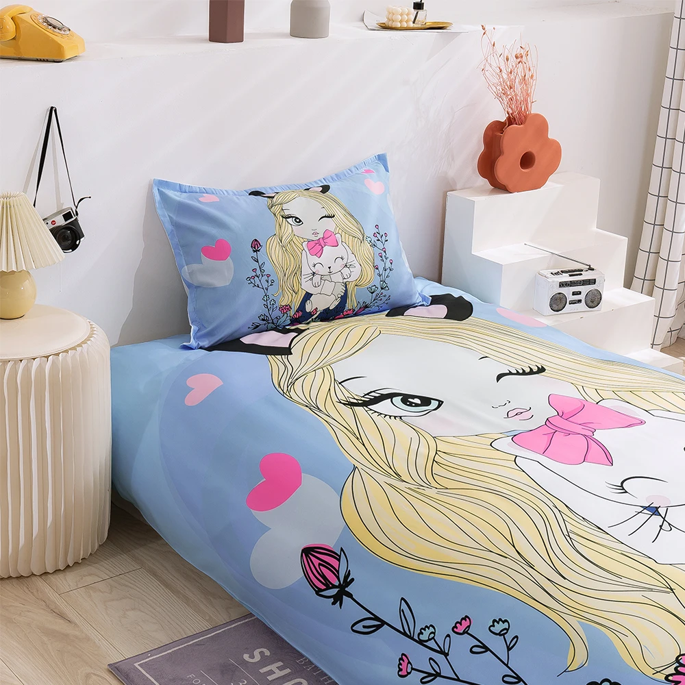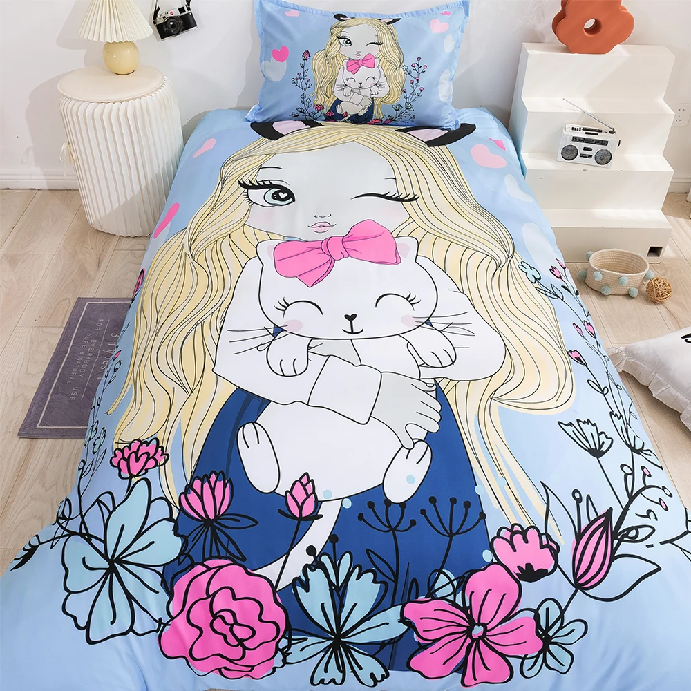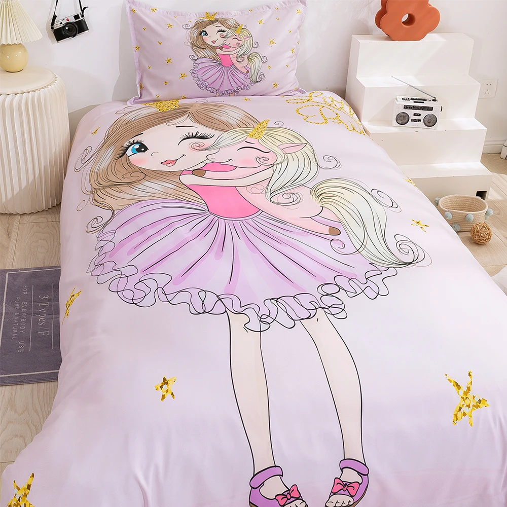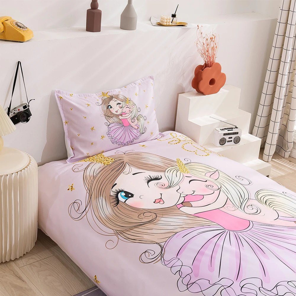 Детский комплект постельного белья для девочек, с рисунком принцессы, пододеяльник, наволочка, одеяло, пододеяльник, кавайное постельное белье