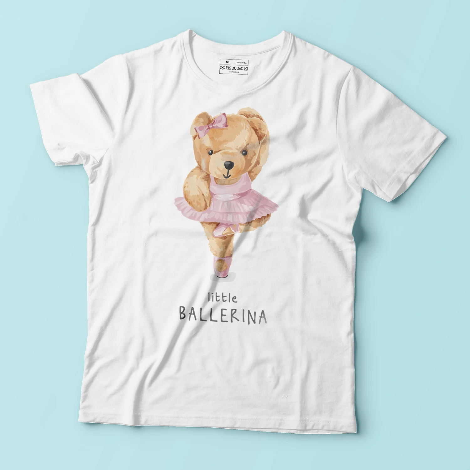 Футболка BLINGPAW с принтом Мишки Тедди и маленькой балерины, белая хлопковая футболка унисекс, летние футболки на заказ