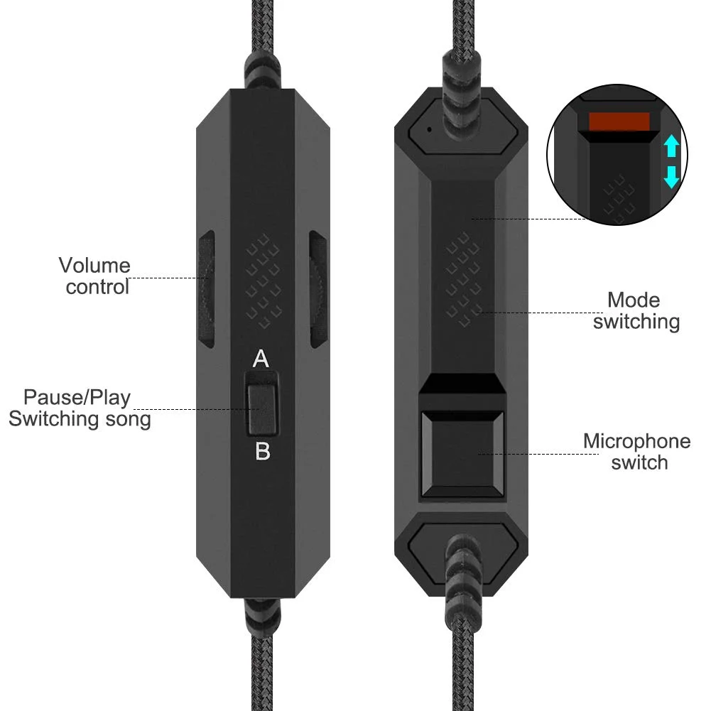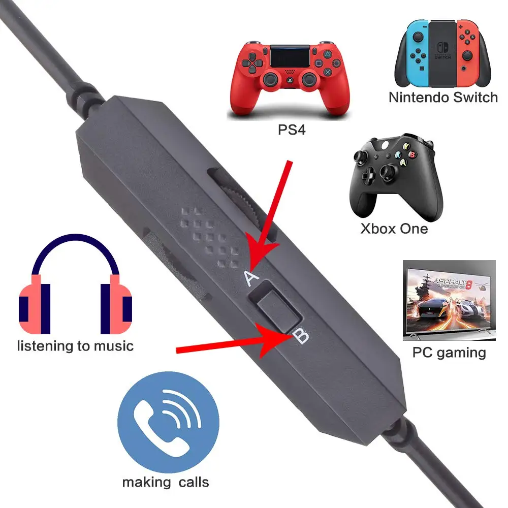 Кабель с двумя режимами, режим лучше для Xbox One,PS4,Nintendo Switch и PC gaming, режим B лучше для совершения мобильных звонков или прослушивания музыки, вы можете переключать режимы гибкими.