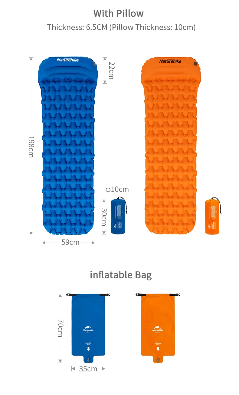 Надувной туристический матрас Naturehike, портативный складной коврик для сна, для палаток, воздушный матрас с подушкой для пикника
