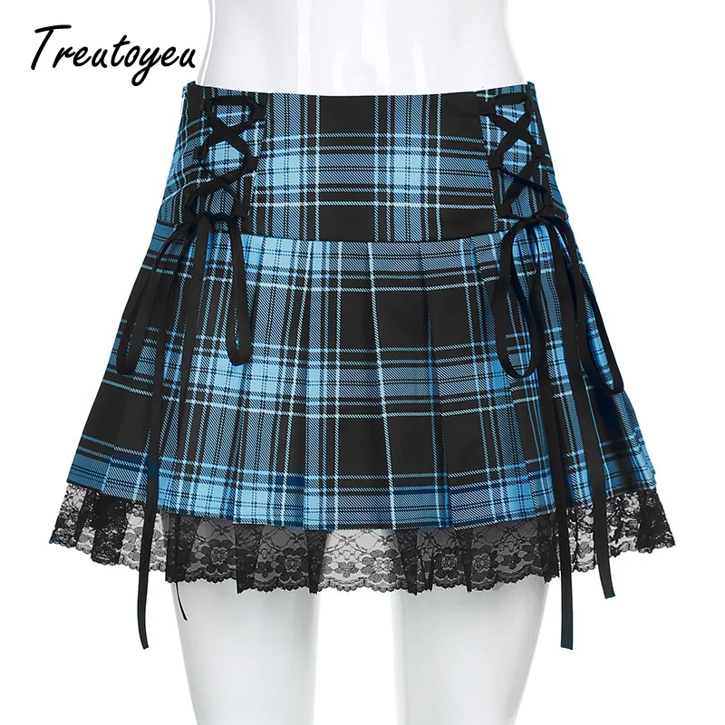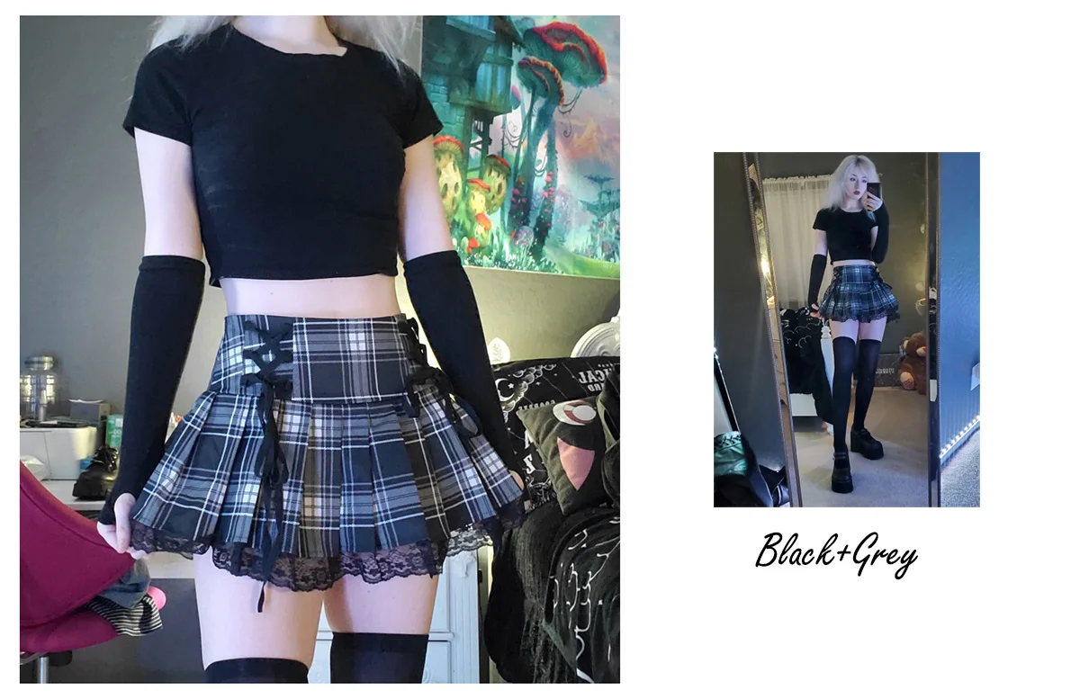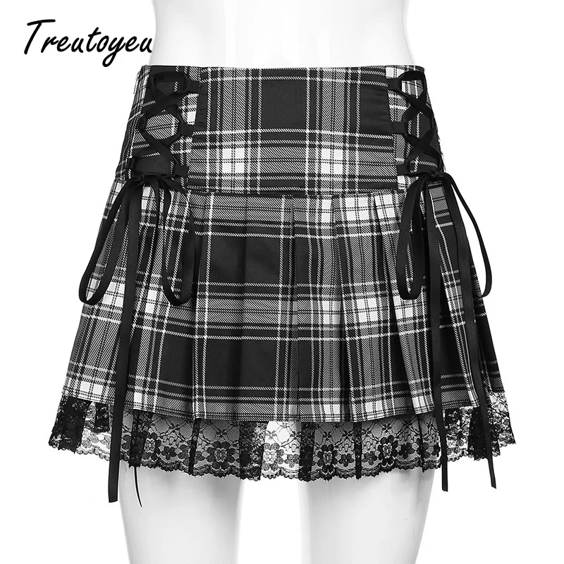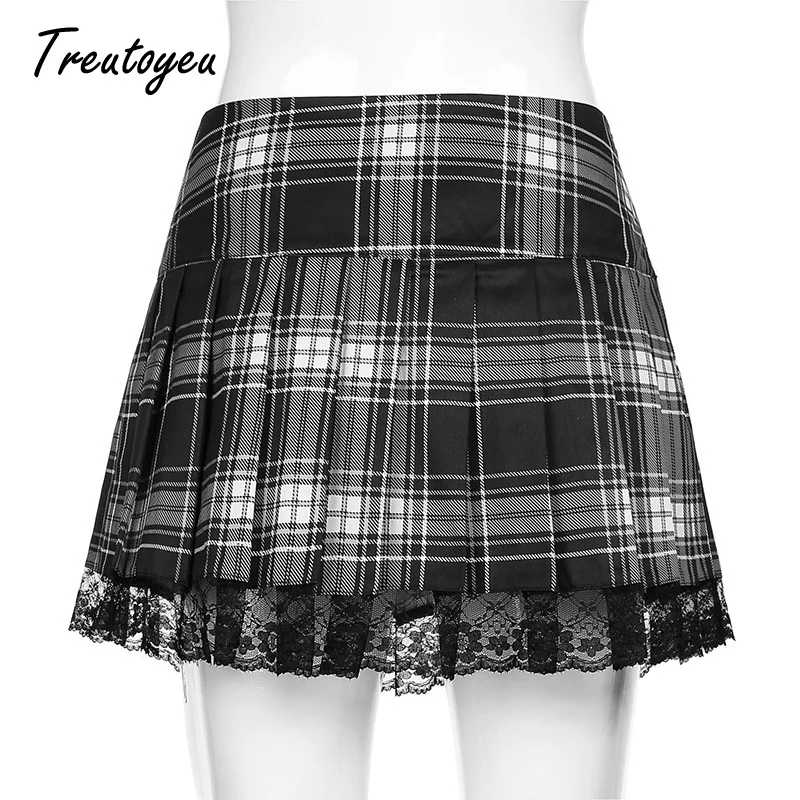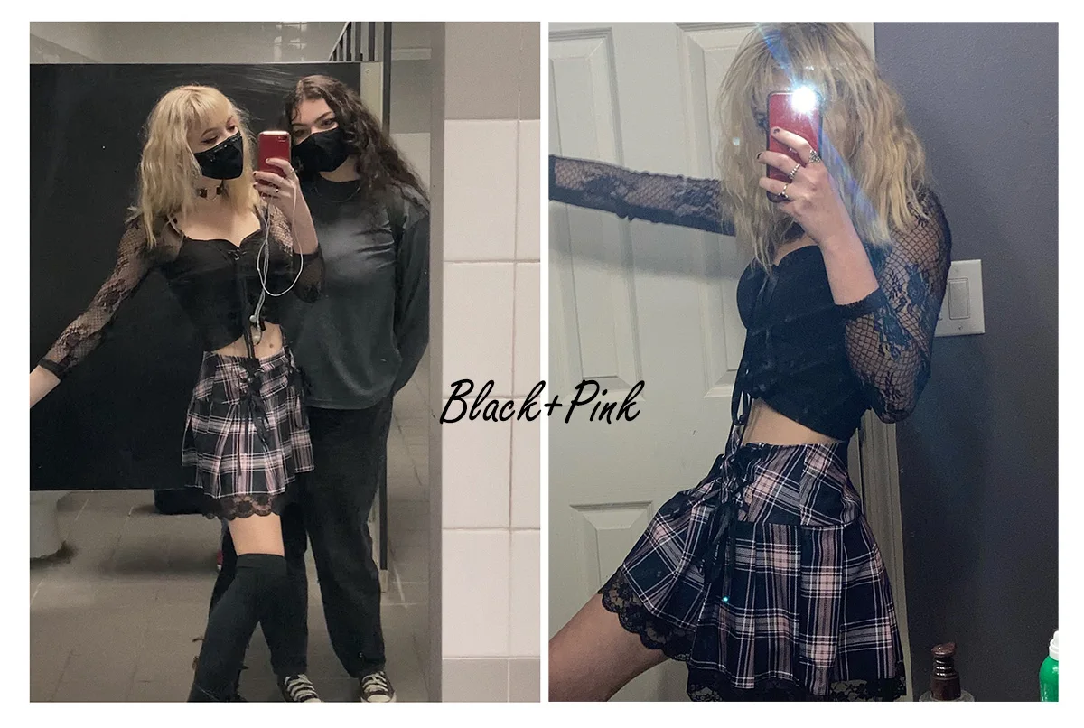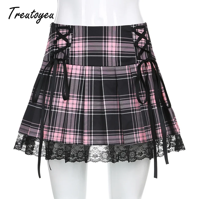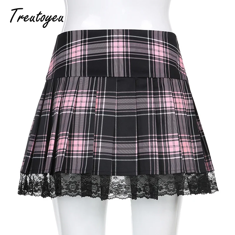 Юбка мини в клетку, черно-розовая, с высокой талией, Y2k