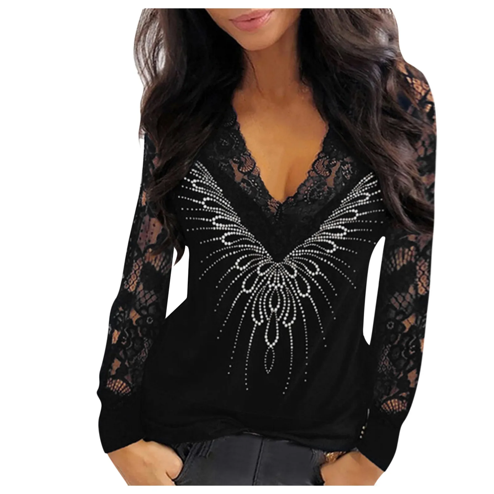 Женские Кружевные блузы с длинным рукавом и v-образным вырезом