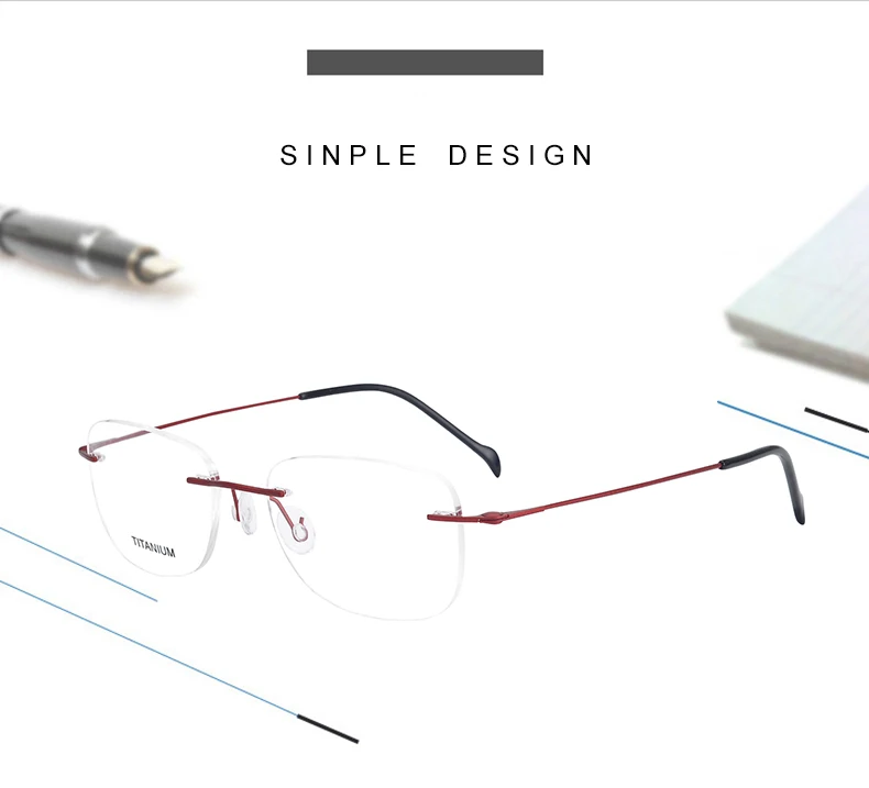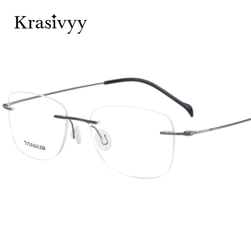 Очки Krasivyy Мужские квадратные без оправы, брендовые дизайнерские оптические Рецептурные очки для близорукости, из чистого титана, без винтов