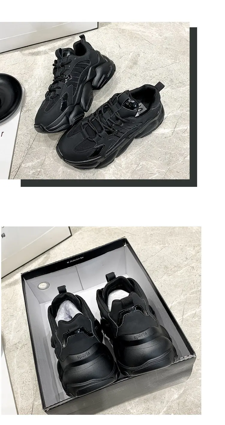 Кроссовки женские, черные, на толстой подошве, на шнуровке, зимние,...