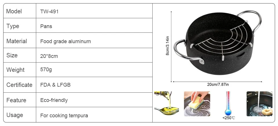 Глубокая кастрюля HOONRA в японском стиле Maifan Stone Tempura Frter, кастрюля для жарки курицы, инструменты для приготовления пищи, кухонная утварь
