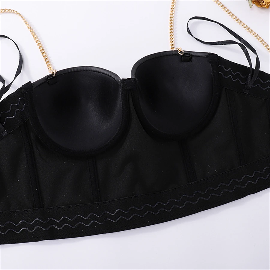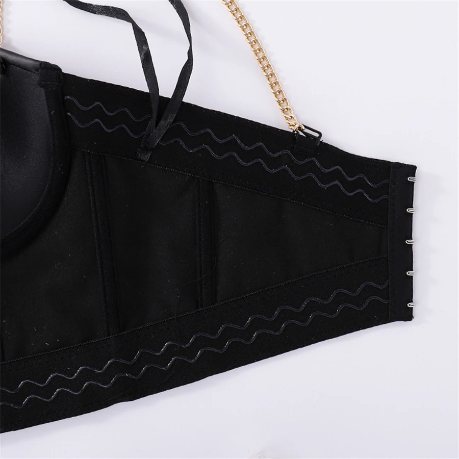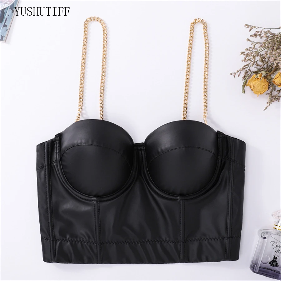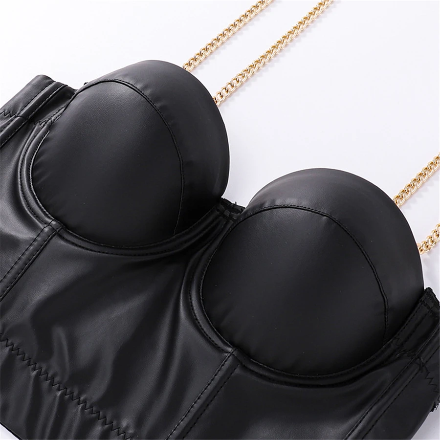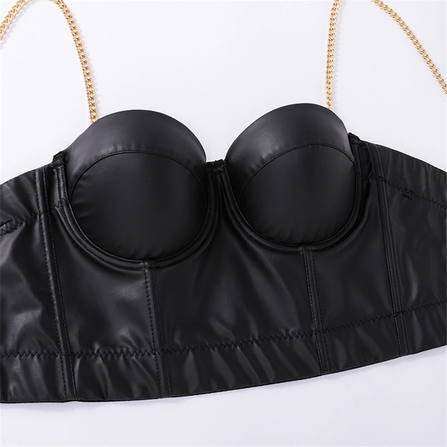 Топ женский из ПУ кожи, с металлической цепочкой и пуш-апом