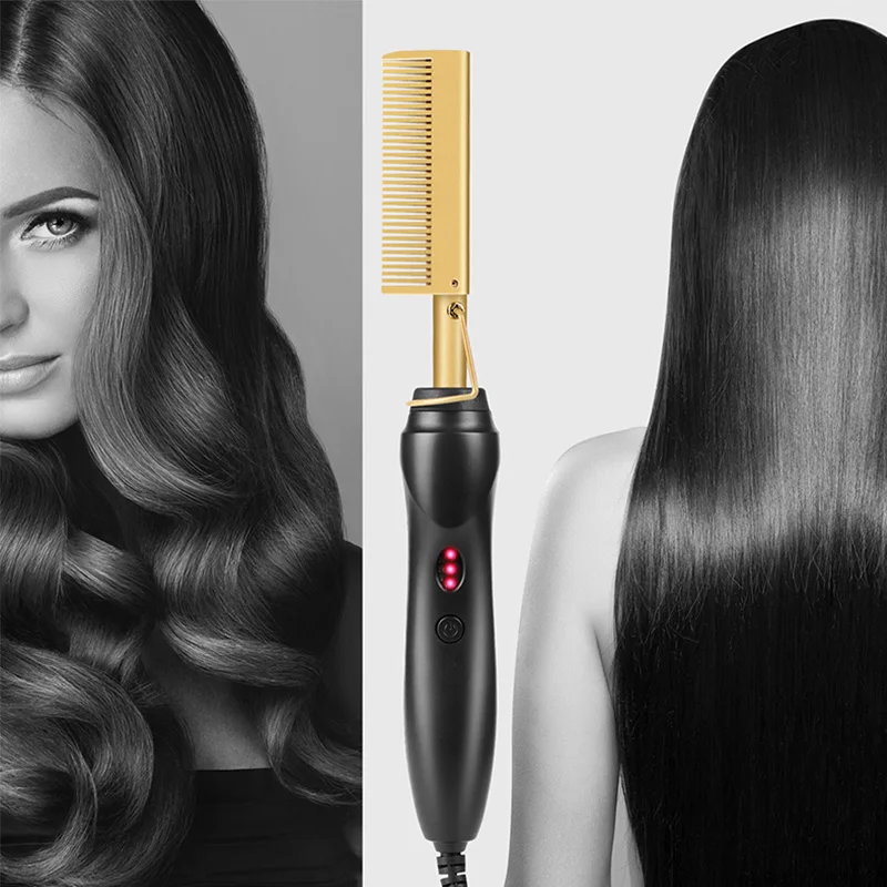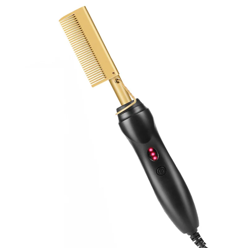 Быстрый нагрев 2 в 1 выпрямление волос завивка стиль титановый сплав медь цвет гребень щетка для волос комплект