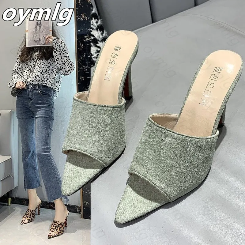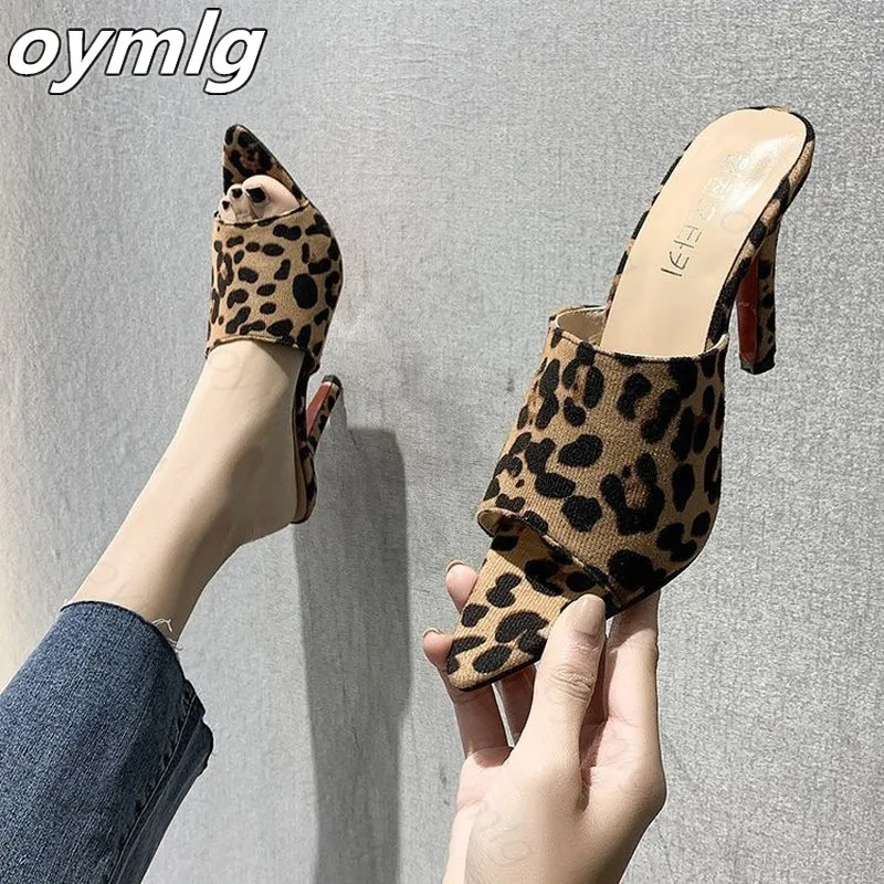 2021 г. Новые брендовые дизайнерские босоножки леопардовые шлепанцы женская обувь большого размера 43 босоножки на высоком каблуке Женская обувь черного, зеленого и оранжевого цвета