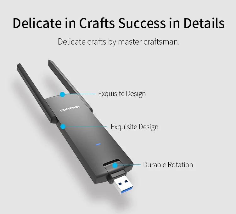 Внешняя антенна 2 * 3dBi, сильный сигнал; Высококачественная конфигурация чипа, стабильная производительность; Двойная антенна, хороший эффект стены;