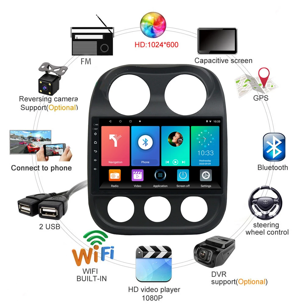 10,1 дюймов 2 Din Android для JEEP Compass 2009-2016 WIFI GPS навигация FM Bluetooth Автомобильный мультимедийный плеер
