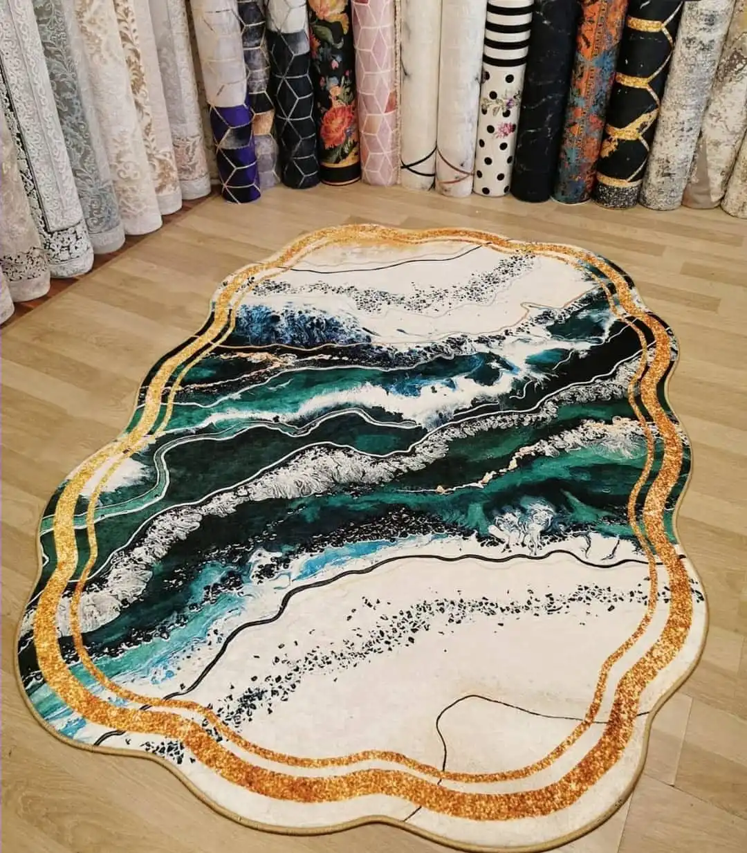 Модель зеленого, белого, золотого цвета, нескользящий напольный ковер для гостиной, ковер для гостиной
