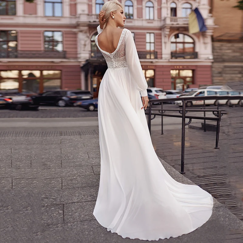 Элегантное свадебное платье трапециевидной формы с v-образным вырезом 2021, высококачественное шифоновое свадебное платье с длинными рукавами, Vestido de Novia