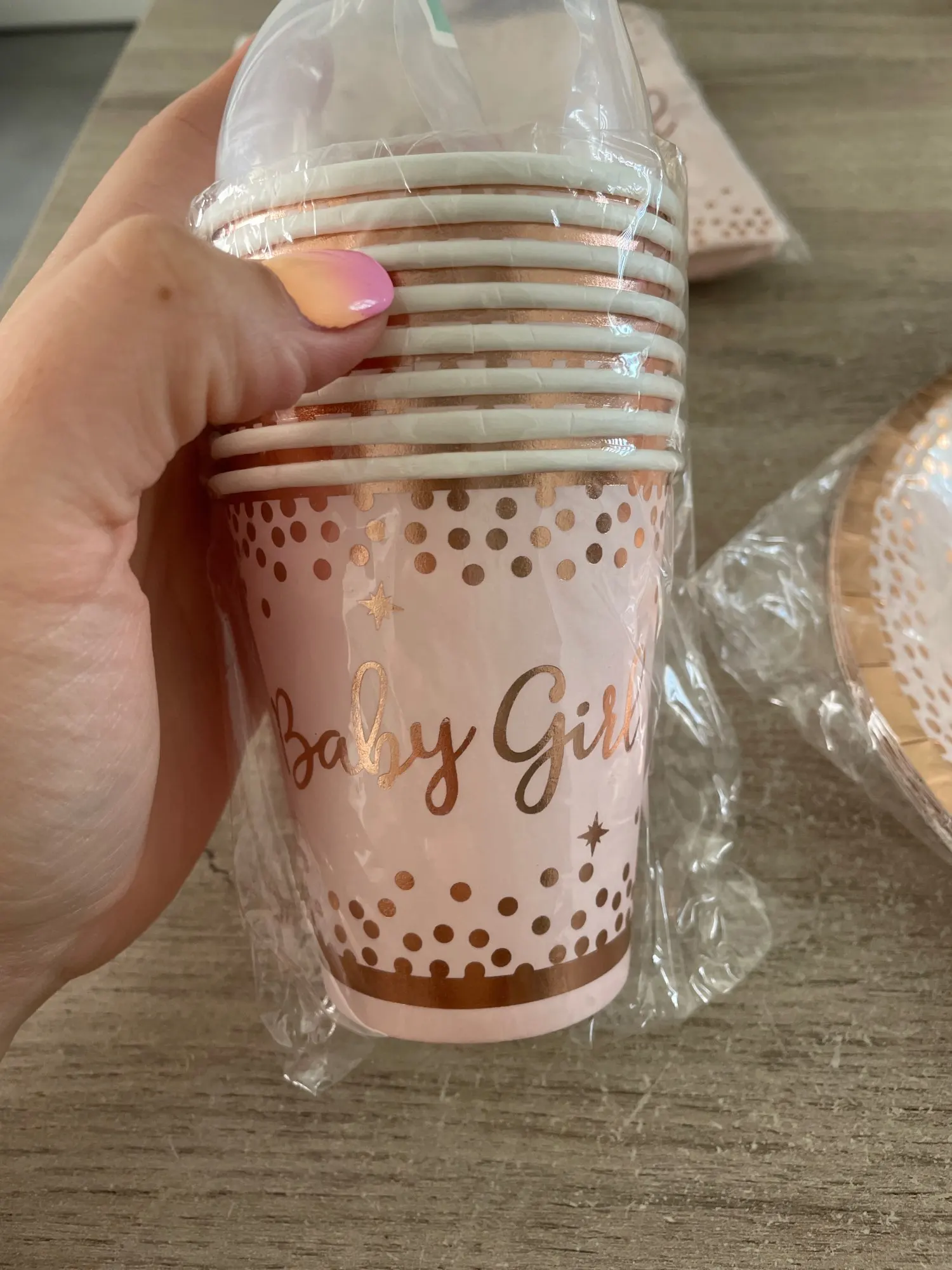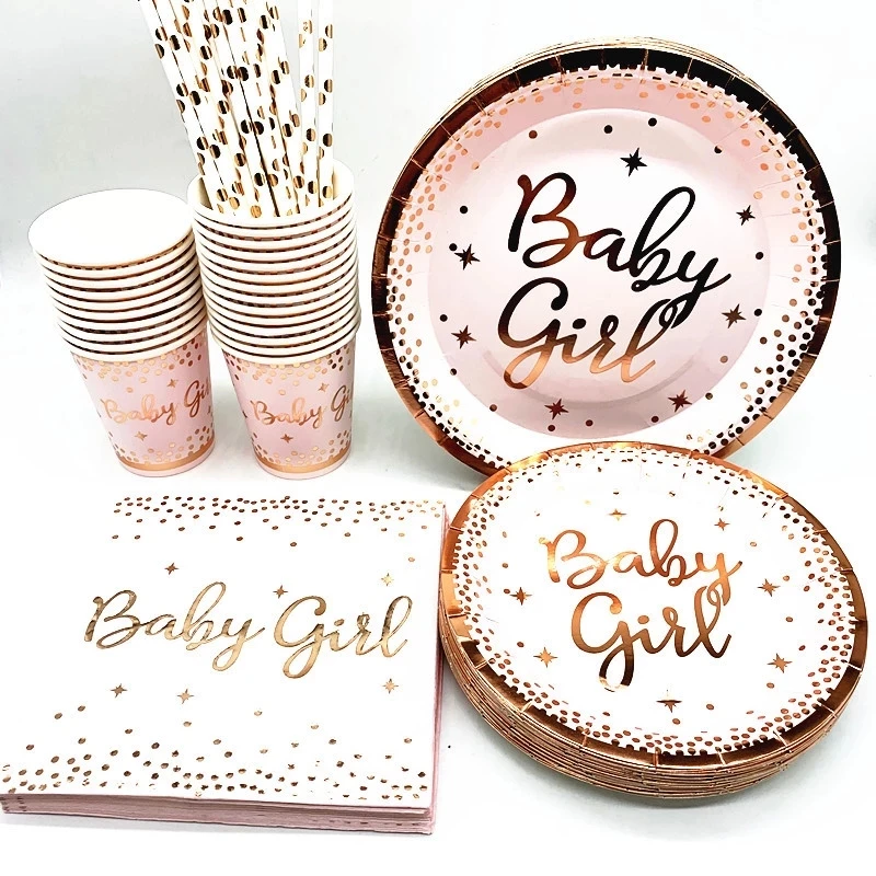 Детская розовая Золотая посуда в горошек для вечеринки или дня рождения