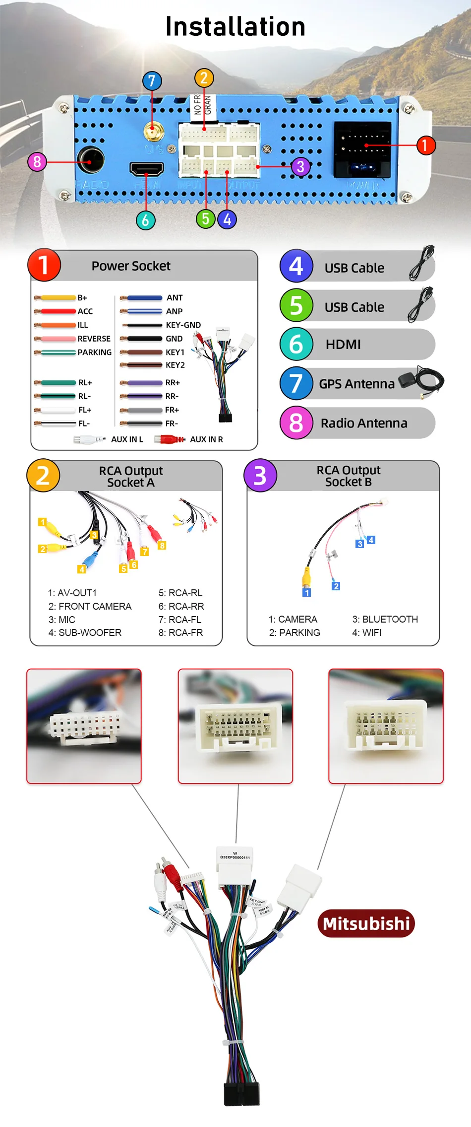 Автомагнитола Eunavi 2 din, мультимедиа, GPS-навигация для Mitsubis...