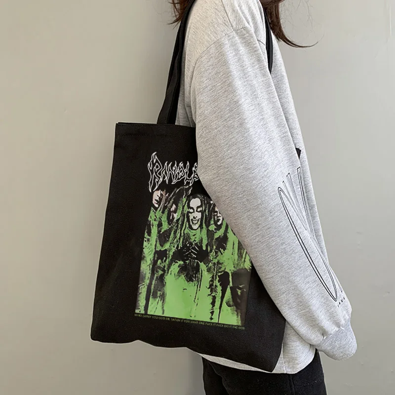 Женская сумка через плечо, в готическом стиле, в стиле Харадзюку, хип-хоп, Большая вместительная Холщовая Сумка, новая женская сумка, сумки-шопперы Ulzzang с темными буквами