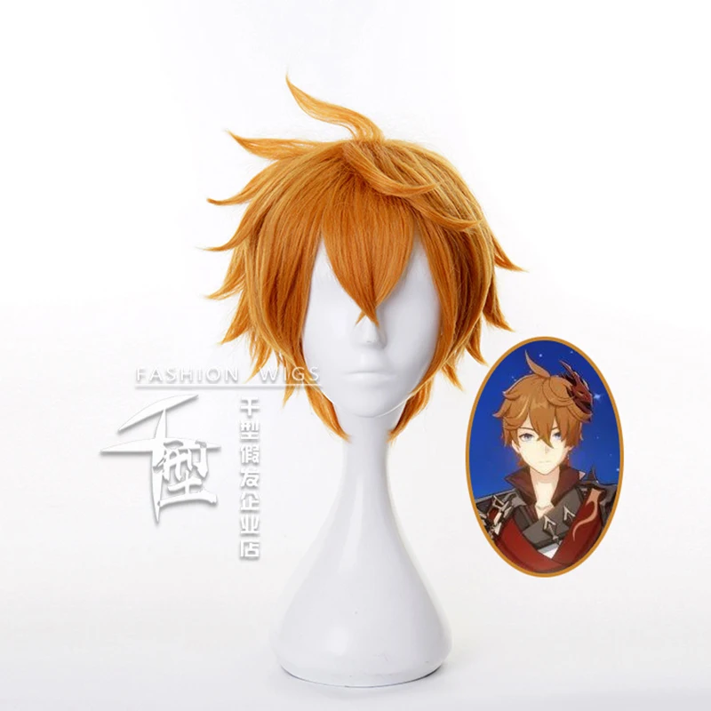 Карнавальный парик для косплея тартаглии из чилда, апельсиновый цве...