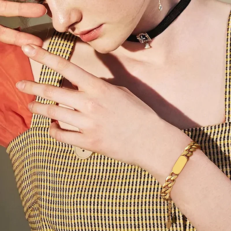 Vnox бесплатные индивидуальные браслеты из нержавеющей стали для женщин, 8 мм с золотым Цвет Bold на не сужающемся книзу массивном кубинская цепь браслет, персонализировать имя начальной подарок