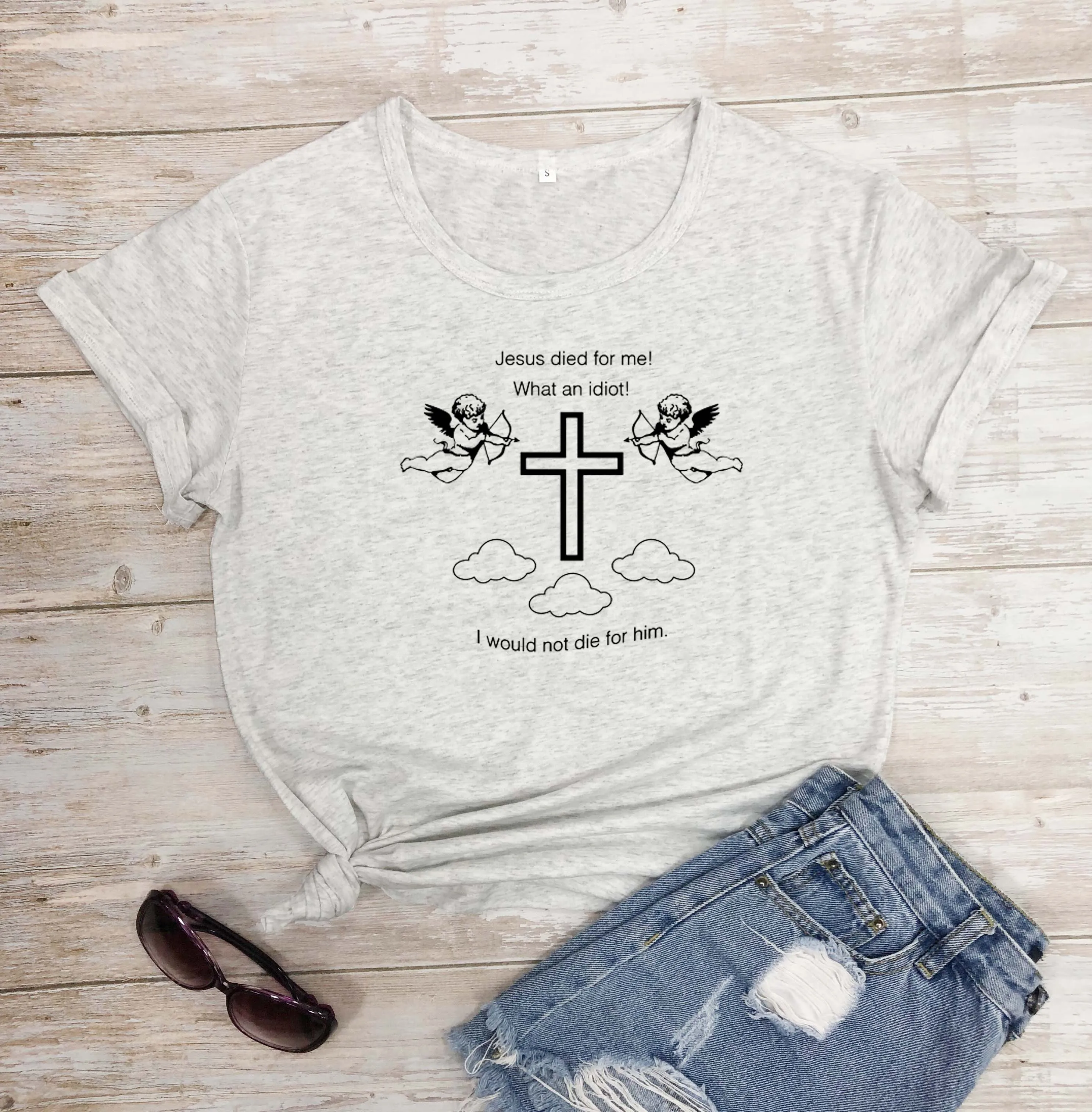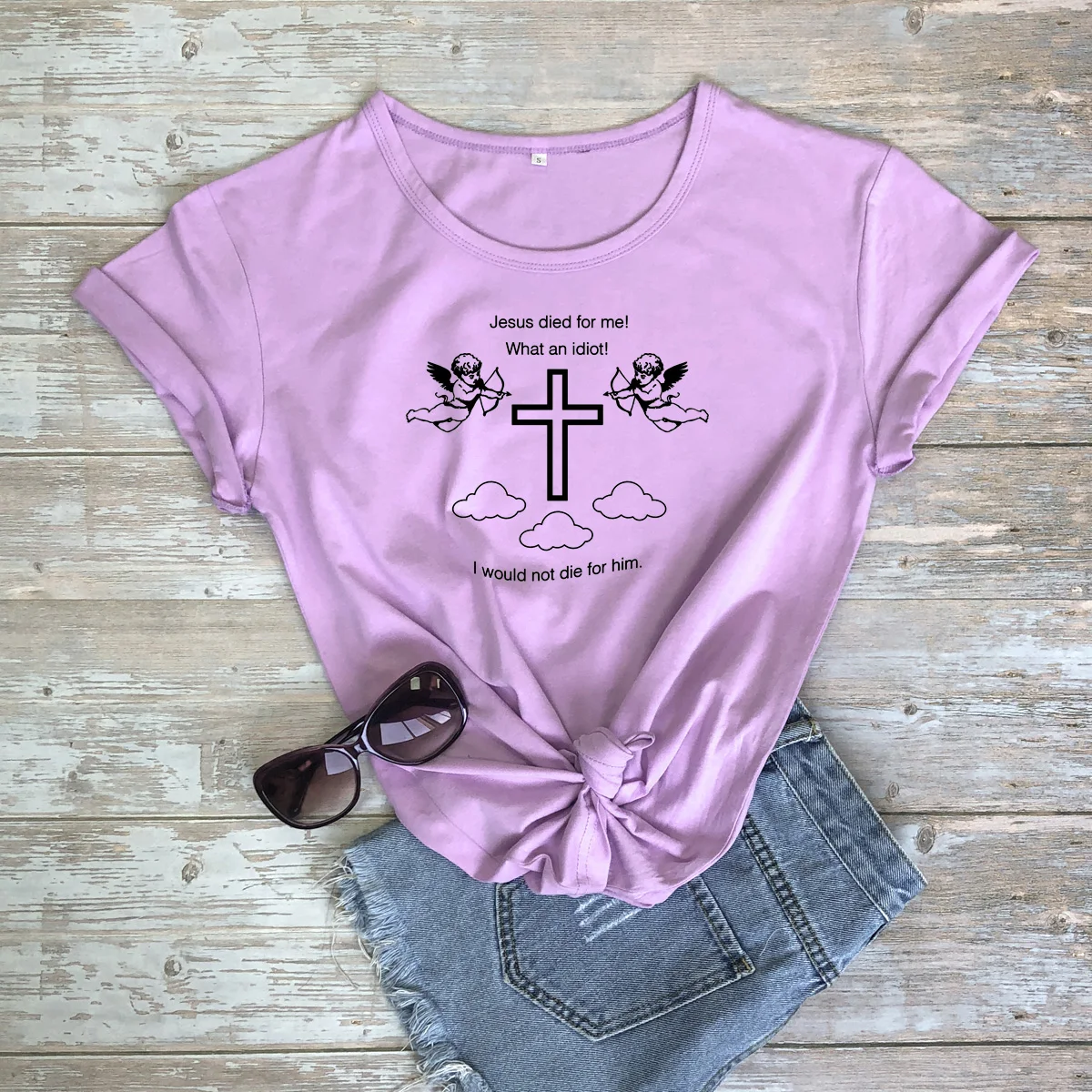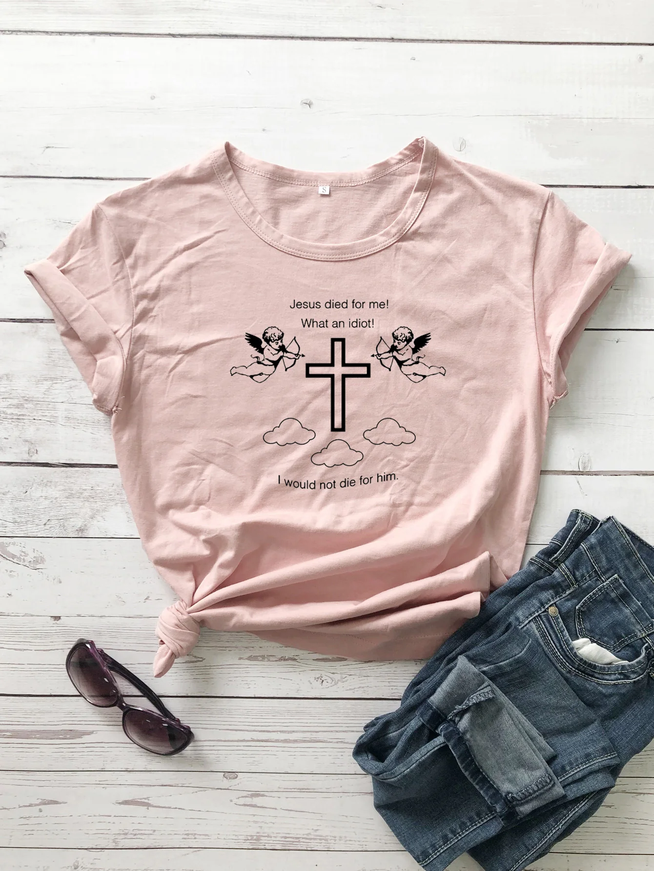 Прекрасный Ангел Иисус умер за меня! Кристианская забавная женская футболка 100% хлопок tumblr Повседневная гранж Цитата модная унисекс футболка Топ Футболка