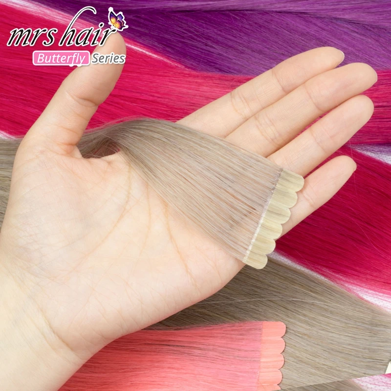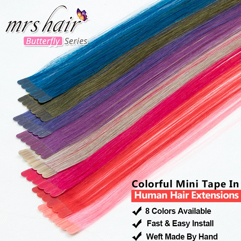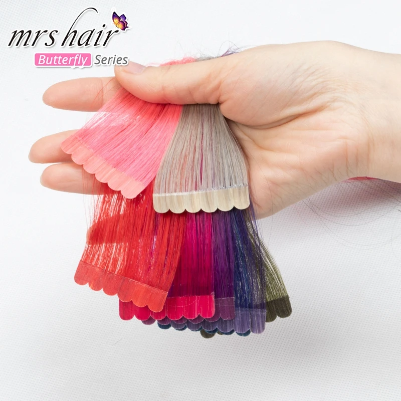 MRS HAIR лента из человеческих волос мини-лента в наращивании волос Красочные Модные волосы клейкий клей 10 шт. 20 г пепельный блонд Фиолетовый Синий