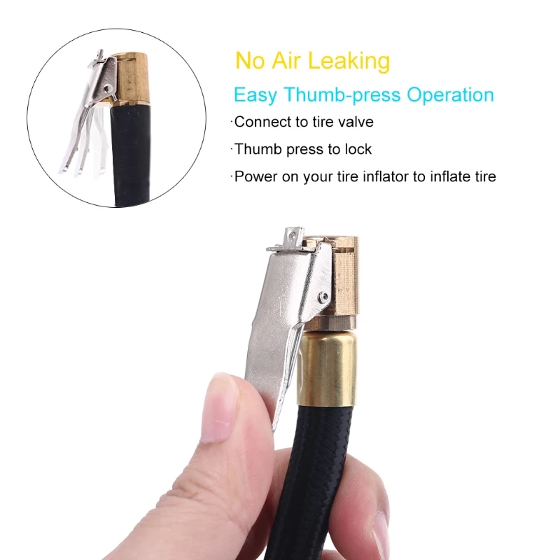 Воздушный шланг изготовлен из резины, прочный и не легко поврежден. Шланг прилагается латунный воздушный клапан клип, который может быть подключен шин клапан. Идеально подходит для надувания шин.