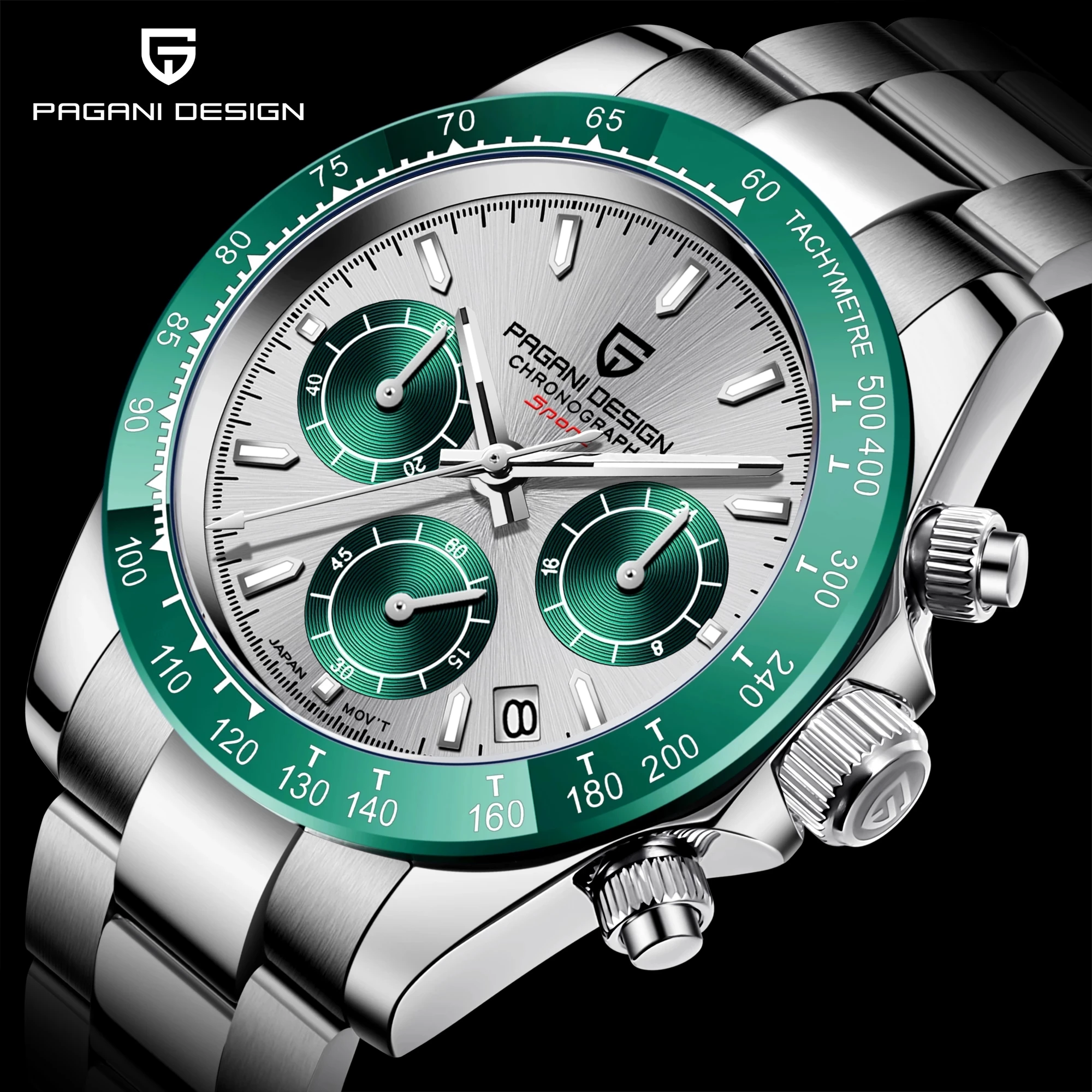 Часы наручные PAGANI Мужские кварцевые, модные спортивные водонепроницаемые с хронографом 1 + 3, VK63, из нержавеющей стали