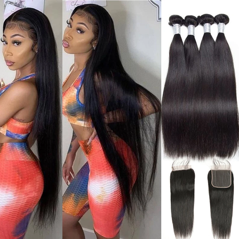 Прямые бразильские человеческие волосы в пучках 30 дюймов, прямые ч...