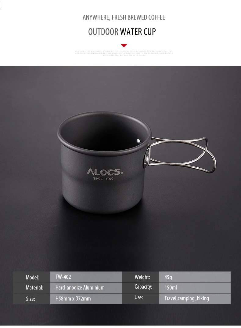 Портативная мини-чашка Alocs TW-402 150 мл для кемпинга, воды, кофейной чашки, чайной стакан, складная ручка для путешествий, пешего туризма, походов, пикника