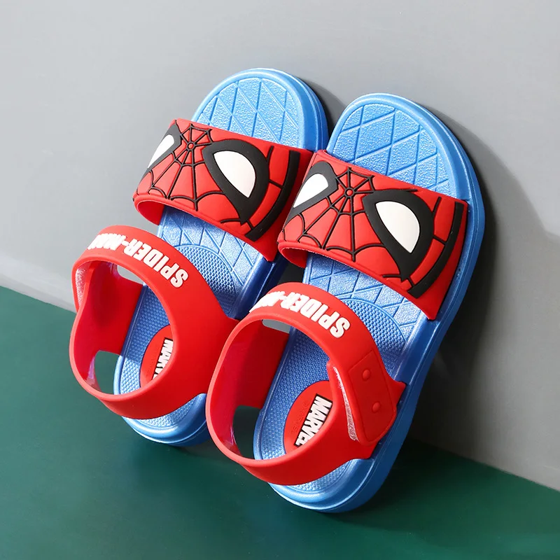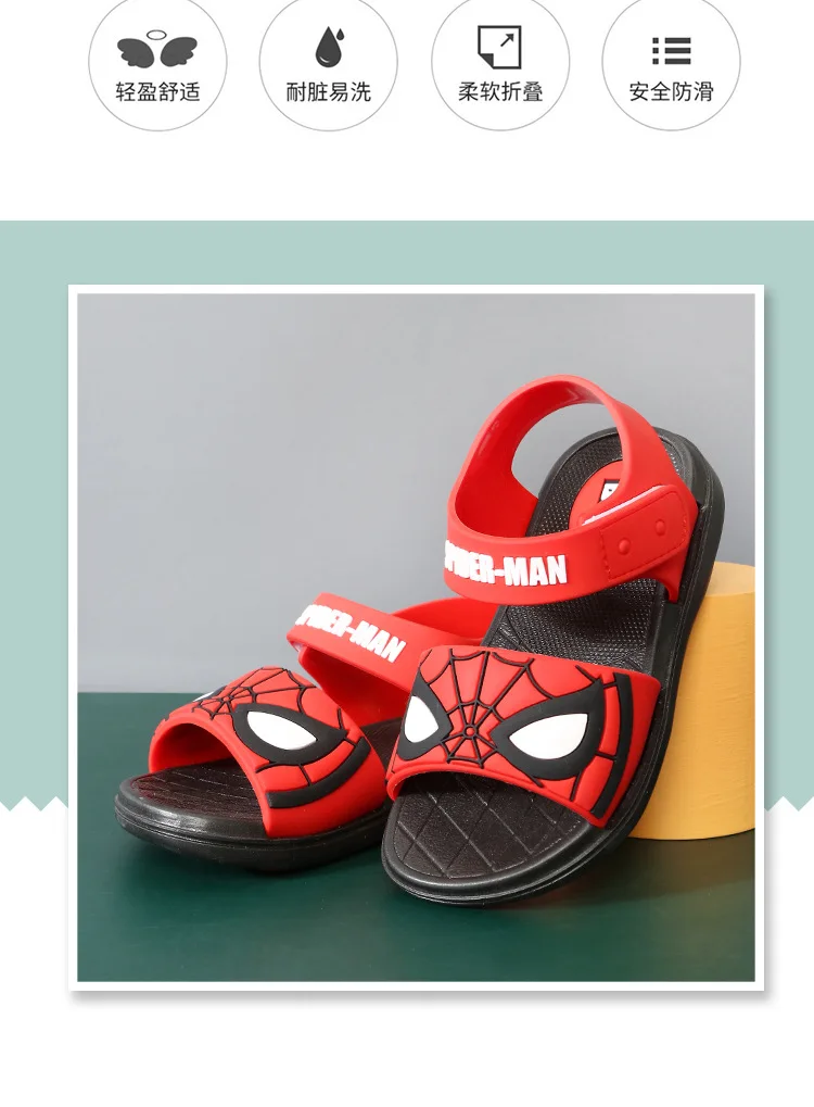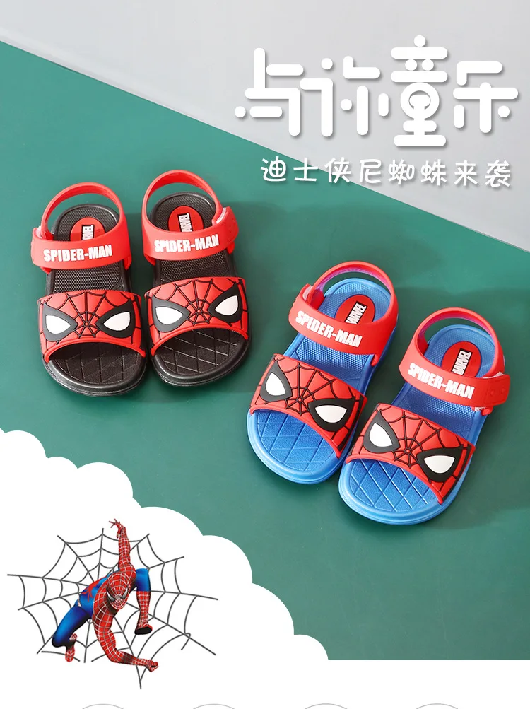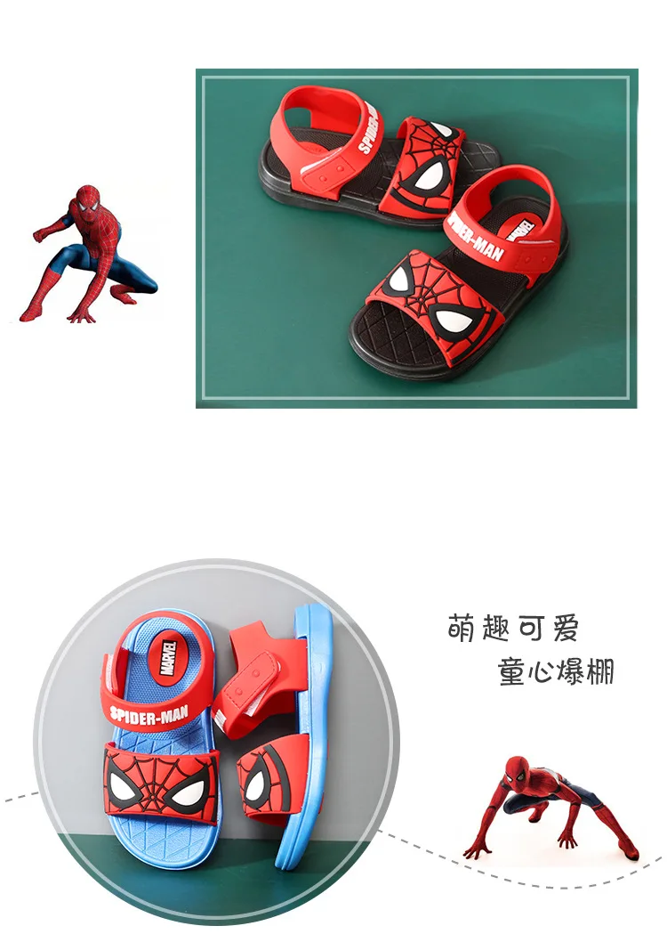Детские сандалии Disney, летняя пляжная обувь с изображением Человека-паука, Повседневные детские мягкие сандалии, нескользящая детская обувь на плоской подошве, От 2 до 8 лет
