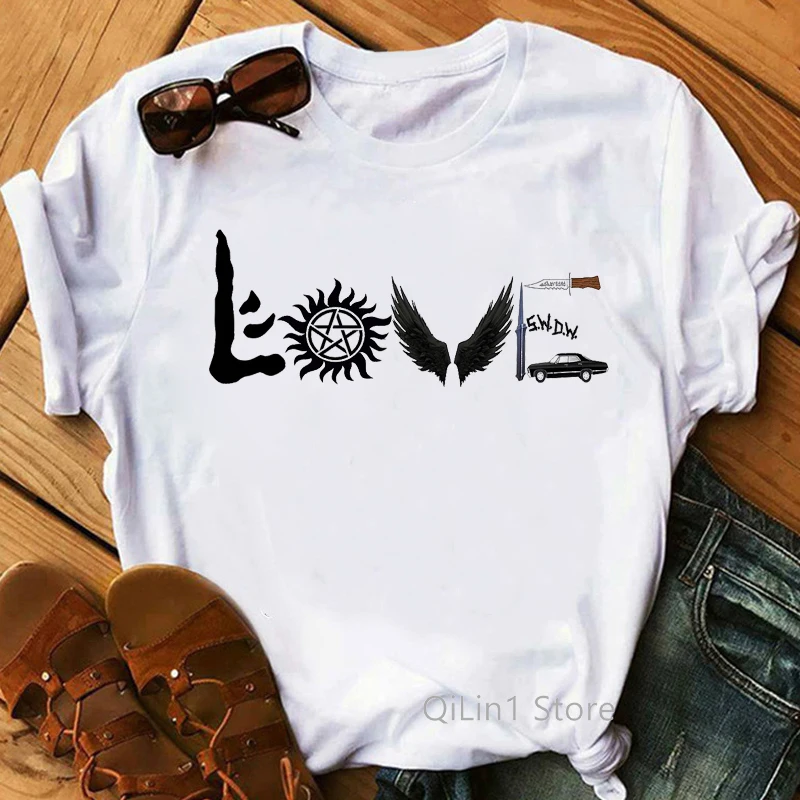 Винтажная сверхнатуральная футболка, Женский Дин Сэм Винчестер, Кастиэль в моем крыле, мужской принт, Женский Топ