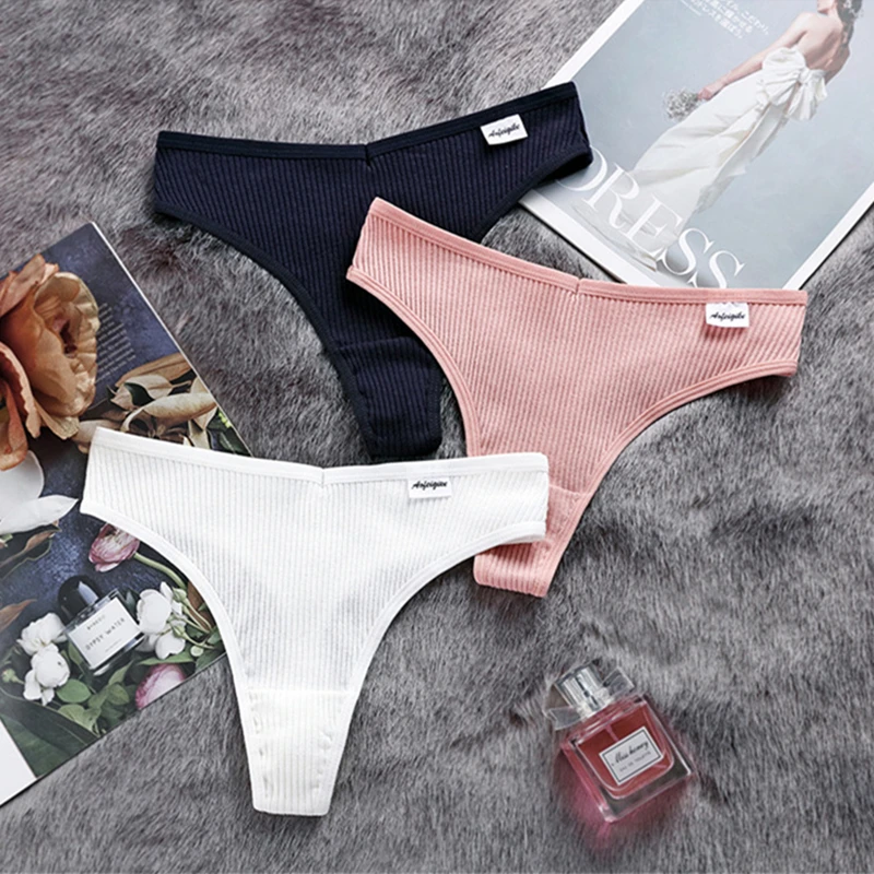 3 шт., женские хлопковые трусики-стринги с заниженной талией