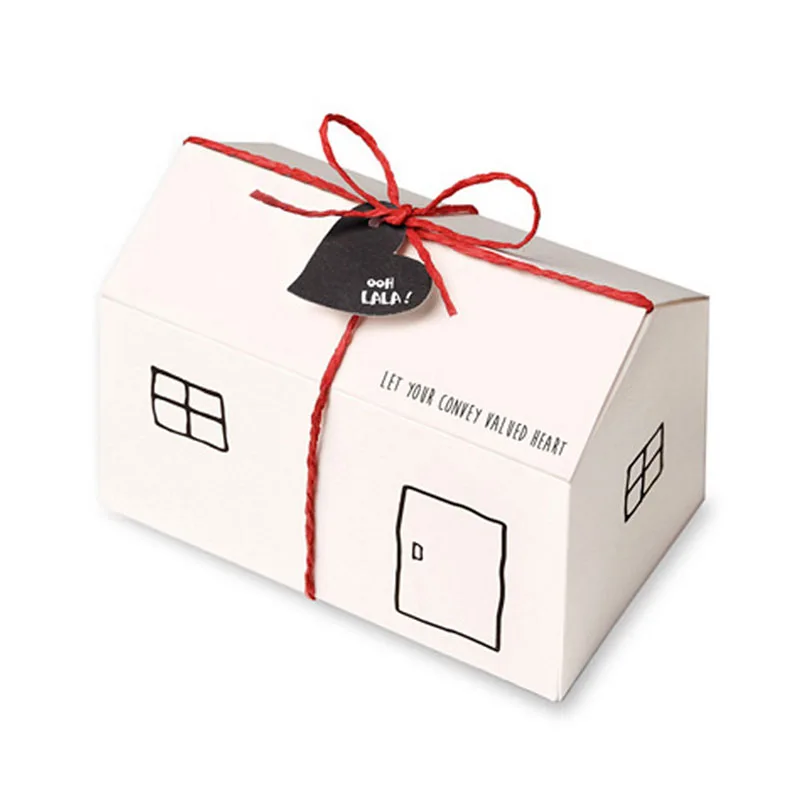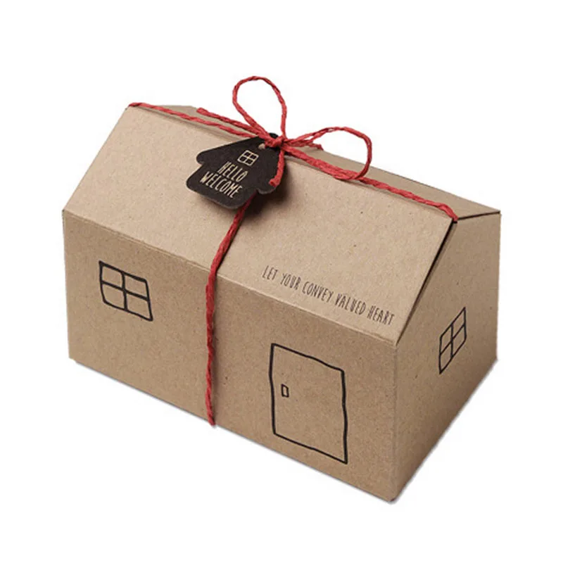 В форме дома крафт-бумага подарочные коробки Белые коричневые конфеты свадебный торт посылка вечерние suppes коробка посылка 10 шт