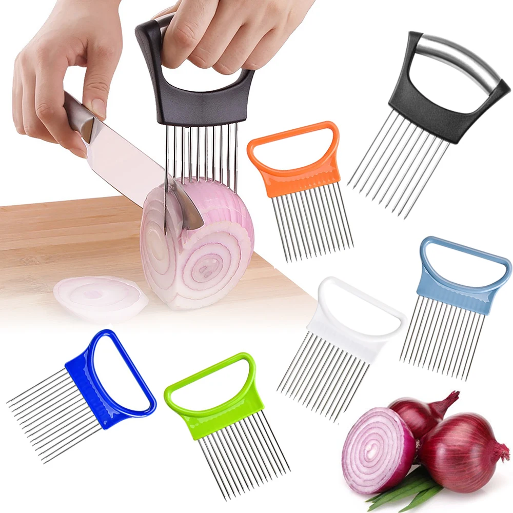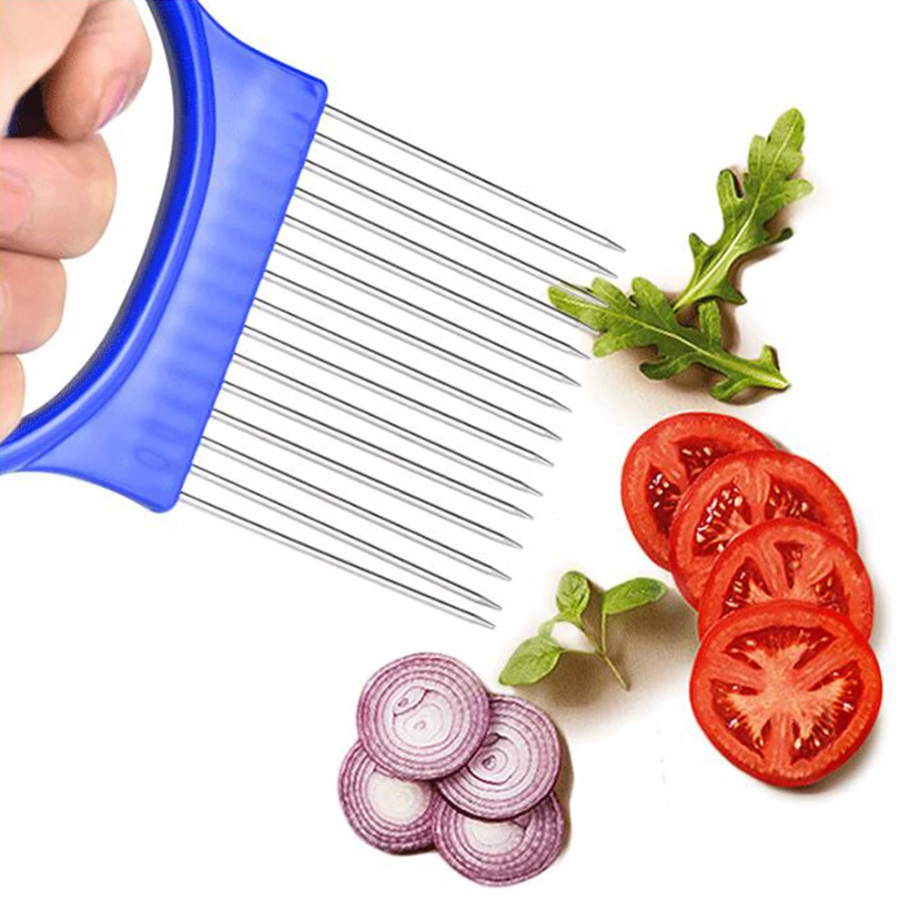 Еда ломтик помощник подставка для овощей Нержавеющаясталь резчик лука лук нарезать фрукты овощи Slicer Резак для томатов Ножи