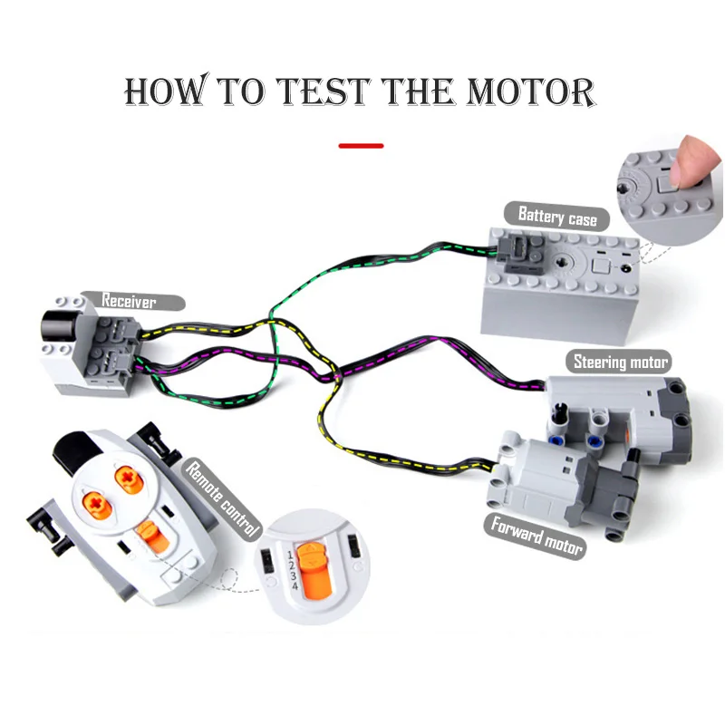 Номер модели: m-мотор 8883, батарейный блок 8881, xl-мотор 8882, Серводвигатель 88004, l-мотор 88003, свет 8870, переключатель 8869, ИК TX 8885, ИК Скорость дистанционного управления 8879, поезд мотор 88002,AAA батарейный блок 88000