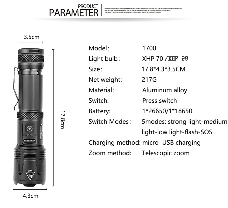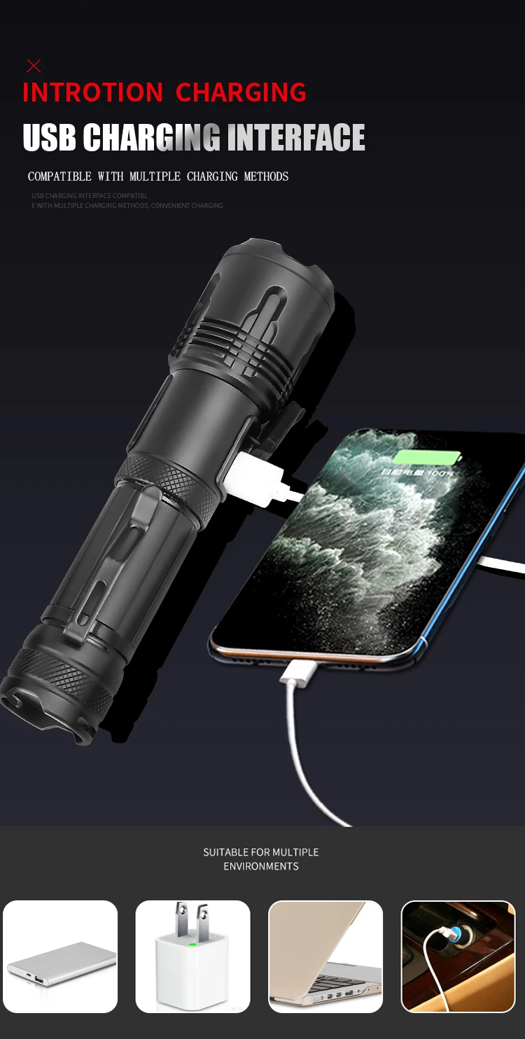 Светодиодный фонарик Pocketman XHP99, телескопический масштабируемый светодиодный фонафонарь, перезаряжаемый от USB, с держателем для ручки, фонарик с хвостовым шнуром, 1865026650