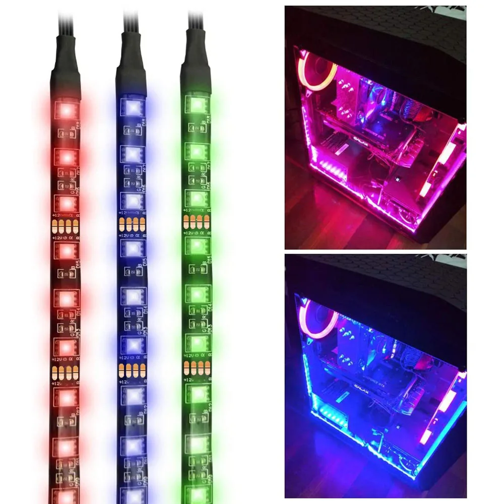 12V цветных (RGB) светодиодных лент светильник ПК компьютер чехол + 50 см 4pin заголовки Материнская плата ASUS Aura SYNC MSI Мистик, SYNC RGB Средняя башня 12V 4PIN