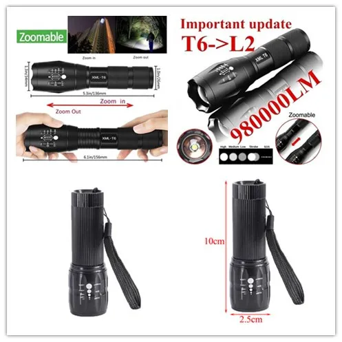 Портативный тактический военный светодиодный фонарик T6, 980000LM, масштабируемый, 5 режимов, без аккумулятора, уличные инструменты и светодиодный мини-фонарик с тройным потоком света